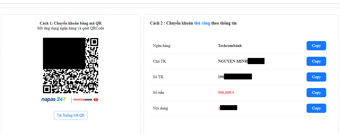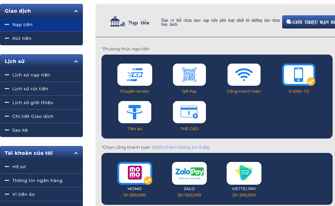 Người chơi khi đã có được tài khoản của trang thì tiến hành thực hiện giao dịch qua ngân hàng bạn lựa chọn cùng với số tiền bạn muốn nạp.