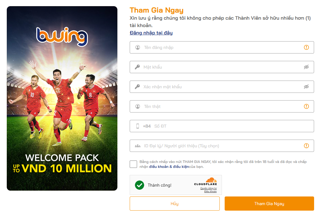 Bước 3: Tiến hành điền đầy đủ thông tin cá nhân của bản thân theo Form đăng ký của nhà cái đưa ra. Người chơi sẽ điền những thông tin như sau: